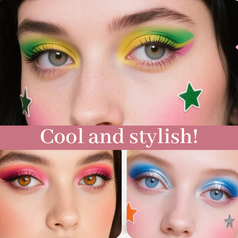 - Vielfältige Stile und Muster, ständig wechselnde Formen: Bietet eine Vielzahl von Farben, Farbverläufen und kreativen Mustern zur Auswahl, wie z. B. Sternenlicht, Leopardenmuster, bunte Kontrastfarben usw., um den Bedürfnissen verschiedener Anlässe und Stile gerecht zu werden, so dass Sie ein individuelles Augen-Make-up nach Ihren Wünschen erstellen können.