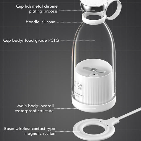Der Boden kann zur einfachen Reinigung abgenommen werden, da alle Teile außer dem Motor spülmaschinenfest sind. Tauschen Sie Ihren alten Mixer gegen einen tragbaren Entsafter, den Sie überallhin mitnehmen können!