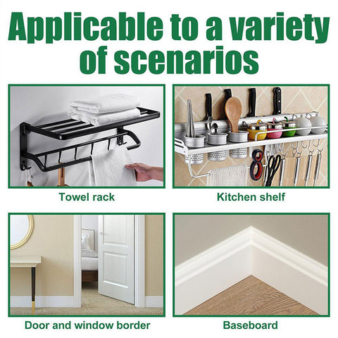 Anwendung - Mattes Glas, Marmor, lackiertes Holz, weiche Metallplatten, Fliesen, Mosaike. Es ist am besten, eine unsichtbare Wandhalterung zu verwenden. und ist ideal für die Befestigung von Sockelleisten, Styroporleisten, Fenstersimsen, Kleiderhaken, etc.