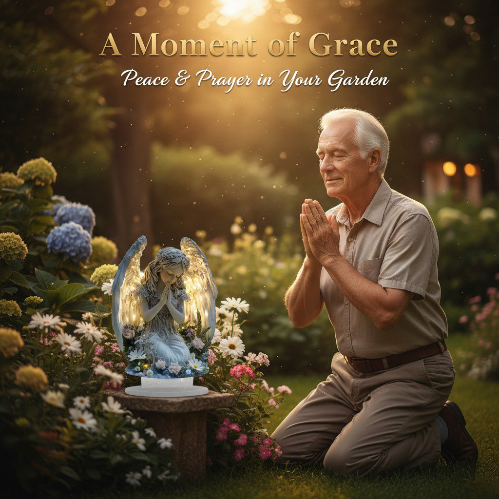 Ein Garten sollte ein Ort der Ruhe sein. Die gelassene, betende Haltung des Engels und das sanfte Licht schaffen eine friedliche Atmosphäre und bieten einen ruhigen Raum zum Nachdenken..