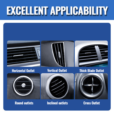 Sichere Luftauslasshalterung: Die Halterung ist so konstruiert, dass sie leicht an den meisten Lüftungsdüsen von Fahrzeugen angebracht werden kann und eine stabile und sichere Befestigungslösung bietet. Silikonbeschichtete Clips sorgen für einen festen Sitz an den Lüftungslamellen, ohne diese zu beschädigen.