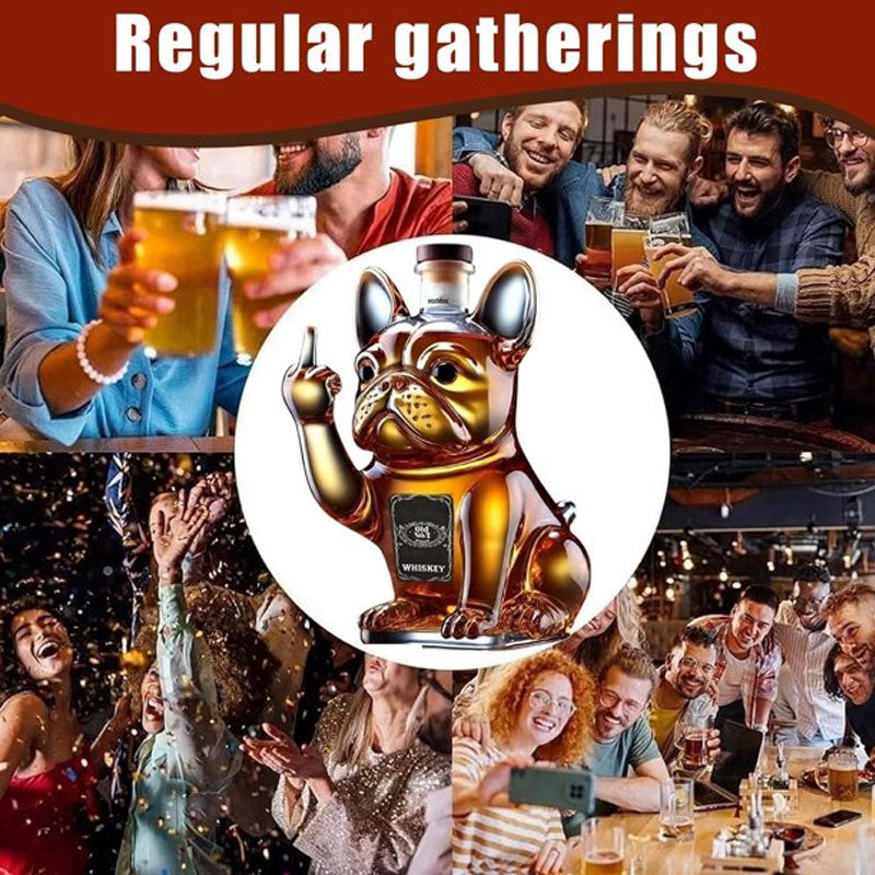 Wer kann diesem kleinen Welpen mit erhobenen Pfoten widerstehen? 🐶 Diese niedliche, runde Glasflasche mit Charakter verleiht Ihrer Bar oder Ihrem Regal Charme und sorgt garantiert für Gesprächsstoff!